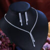 Brilliant light luxury full diamond necklace earrings dinner bride wedding jewelry set chain tassel temperament party zirconia set