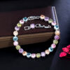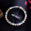Fashionable and trendy crystal ice flower bracelet, a perfect gift for ladies, rainbow cubic zirconia hand jewelry.